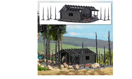 | Busch Bausatz: Abgebrannte Waldhütte (Dachstuhl echt Holz), H0 Größe der Hütte ca. 111 x 85 mm | ![]() |