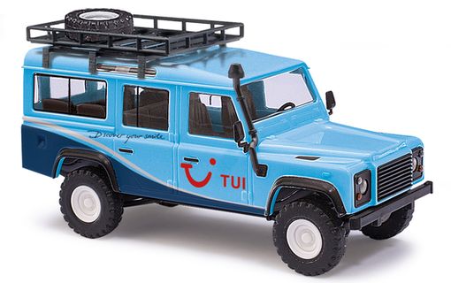 vorbestellbarer Artikel, Auslieferung erfolgt nach VerfügbarkeitBusch Land Rover Defender, 1983, TUI mit Gepäckträger und Koffer, 1:87 BUSCH Neuheit 2026/1 | ![]() |