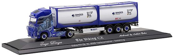 Herpa eXtra Volvo FH GL XL, vvsp., 2x20ft.Tankcontainer-Auflieger, Dinges Logistics/The Viking CX, in PC-Box, 1:87 | ![]() |
